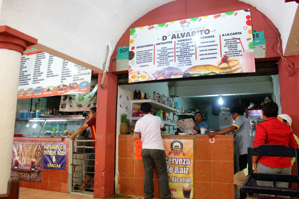 When we first arrived in Valladolid, we dumped our backpacks and headed out in the heat ready to demolish a good plate of rice, tacos or whatever we could get our hands on. It was pretty obvious that the ‘place to be’ for food was the covered food court on the corner of the main square.