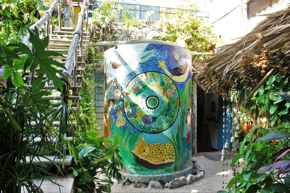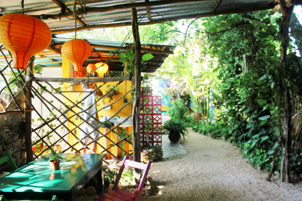Hostel La Candelaria was hands down the best hostel in Valladolid. We’d even go as far as to say it’s the best hostel we stayed in during our travels in Mexico and Central America so far. Hostel La Candelaria is a colourful space with a laid-back vibe. The hostel is spread out over a garden area with a larger outside kitchen at the back and a small kitchen inside. Breakfast is included and is served up under the trees in the outdoor kitchen. We enjoyed hotcakes (what Mexicans call pancakes) and fruit in the morning.