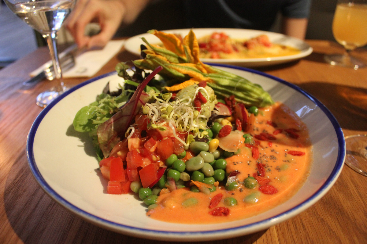 After seeing the seasonal menu for Flax & Kale, I had my heart set on eating a meal up on their roof terrace. The restaurant itself is beautiful. The menu includes raw vegan lasagne and black rice with coconut meat. I had a raw zucchini blossom dish but I’m not sure it was the best pick. Take some time to paw over the menu rather than making a snap decision. (pescetarian, vegetarian, vegan and raw options)