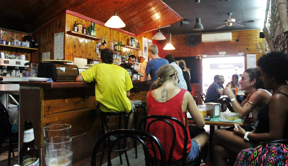 This cooperative in the Sants neighbourhood is a locals place through and through. It was recommended to us by a local friend from Barcelona. The locals who hang out here come to debate politics over a beer. Thanks to many of them being vegetarian, you can get a big wedge of vegetarian Spanish tortilla at the bar. I reckon the Spanish omelette with courgette was best, but Luke would argue for the aubergine one – you’ll have to try both to see who’s right! (veg-friendly)
