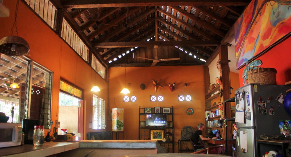 We’re in a water-front home not too far from the main port town of Moyogalpa. The house itself is a traditional Nicaraguan home which has been converted with high-ceilings, an open front porch and a vibrant interior. From the front of the house we can see right out onto Lake Nicaragua and from the back we have a view of Volcan Concepción.