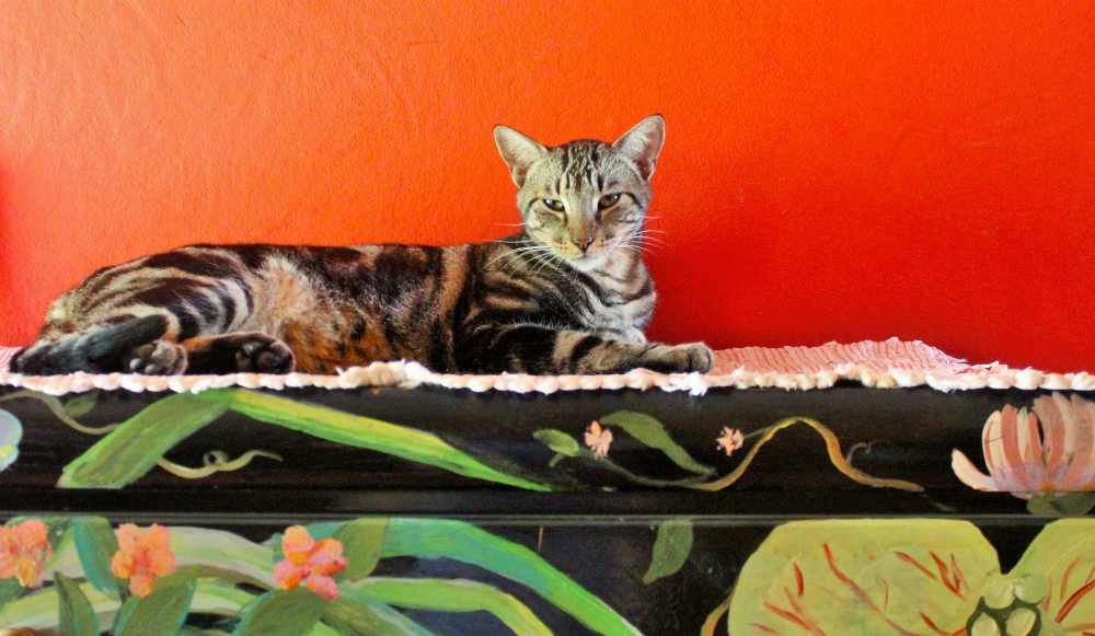 We have, of course, got some furry friends to look after too. The most lively of all the animals we’ve pet sat is Cappy, a 10-month old puppy with a love for gnawing at bare feet and stealing shoes from the porch. We also have Ocho, a cat as sleek and beautifully patterned as an ocelot, and Queenie, who’s more interested in tuna than us.