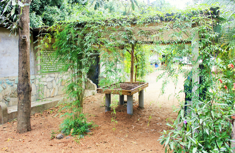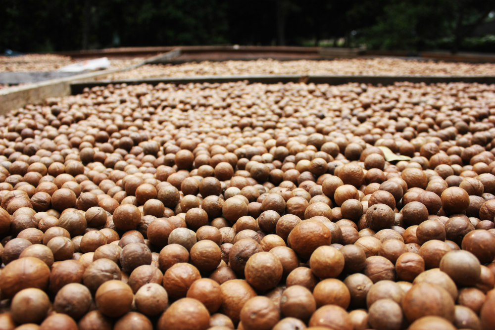 Macadamia nut farm antigua - nuts drying out - charlie on travel