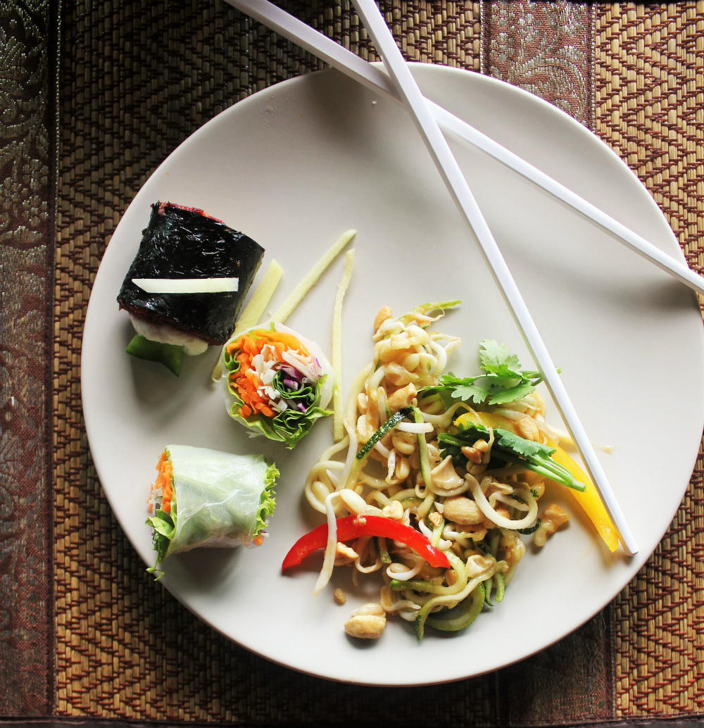 They prepare fresh raw vegan sushi with vegetables and macadamia nut paste, fresh vegan spring rolls packed with crisp veggies, raw courgette pad Thai, energy balls made with dates and coconut, and even frozen blended bananas (commonly known as ‘nicecream’ by vegan food bloggers).