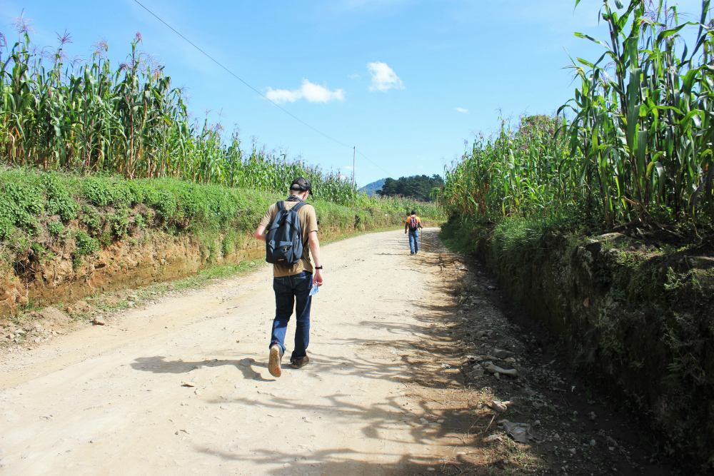 - Walking through the corn fields on our route up