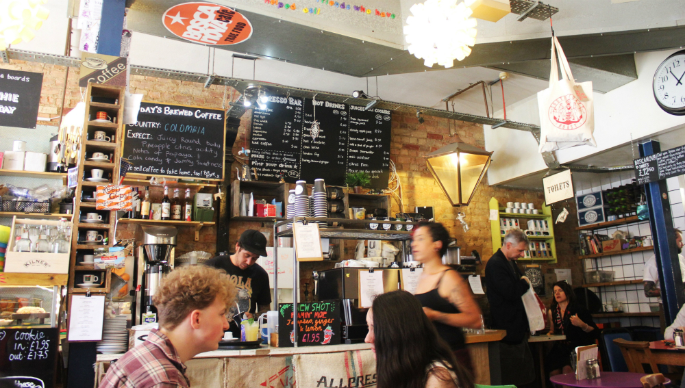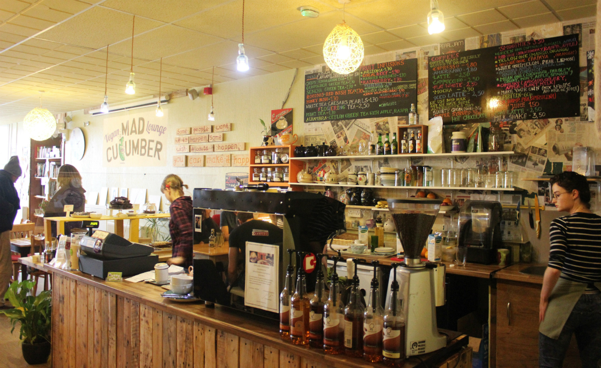 The jazziest of all the veggie cafes around has got to be Mad Cucumber. This vegan joint is all about colourful and fun foods with staples including bean chilli, veggie curry, vegan burritos and marinated salad bowls. On top of that, there’s an extensive juice list and a whole host of vegan cakes. The cafe is open until 9pm on four nights of the week and hosts a monthly live music night which has a very laid back and friendly vibe about it. (all vegan)