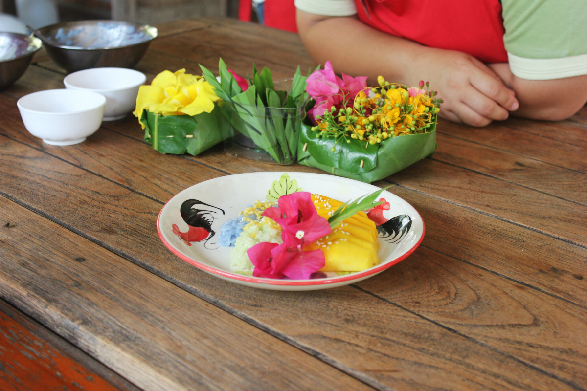 No Thai cooking class would be complete without a traditional and finger-licking delicious mango sticky rice for dessert. Crazily, the mango sticky rice we learned to make was actually dyed blue using a blue flower.