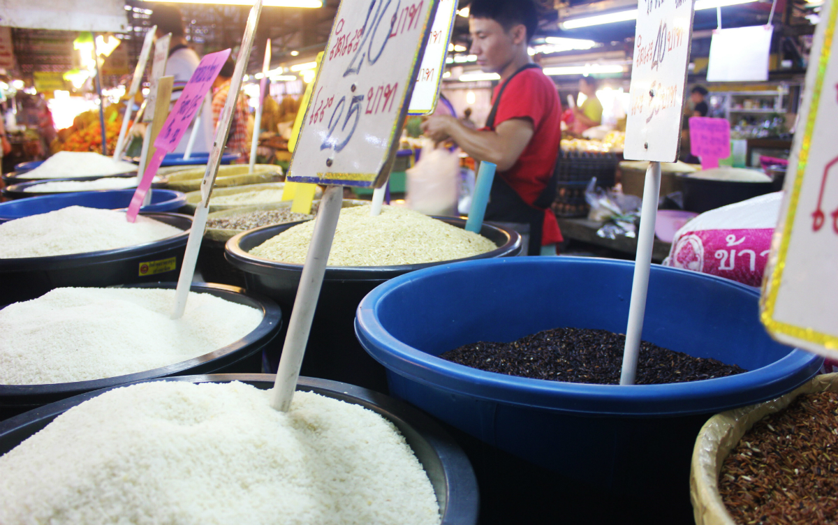 We took a detour to a local market to learn about all the staple Thai cooking ingredients and where the locals go to buy them. As you’d expect, soy sauce, fish sauce (replaced by mushroom sauce for vegetarians) and chilli sauce all made an appearance, along with coconut milk which we saw being freshly made by coconut crunching machines and buckets full of rice.
